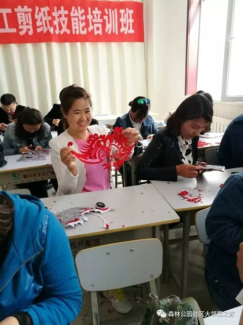 为弘扬我国民间传统文化,不断丰富归侨侨眷的文化生活,切实解决好贫困归侨侨眷的就业创业问题,2017年4月24日,森林公园社区组织辖区归侨侨眷参加了银川市经济技术合作和外事侨务局联合举办的全市贫困归侨侨眷手工剪纸技能培训班。