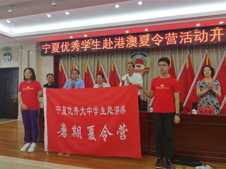 “2018年宁夏优秀大中学生赴港澳夏令营”授营旗。