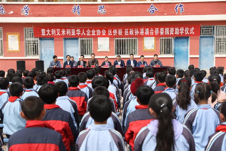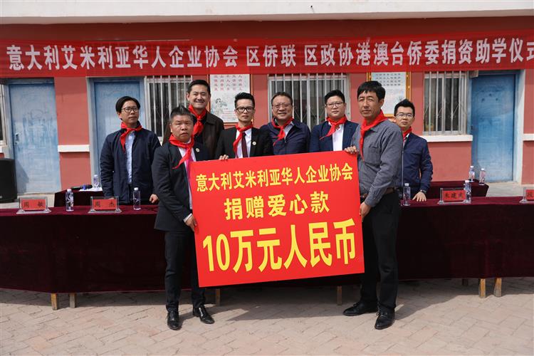 意大利艾米利亚华人企业协会会长赵正勤先生为同心县满春小学捐资10万元,作为资助奖励该校优秀师生基金。赵正勤会长及各位意大利侨胞,虽非宁夏籍,尤念故乡情,关心关爱我区贫困学生,积极支持贫困地区教育事业发展,充分展示了中华民族乐善好施、扶贫帮困的传统美德,体现了广大海外侨胞心系祖国、血浓于水的骨肉亲情。 自治区侨联副主席郑大鹏在致辞中向意大利艾米利亚华人企业协会的到来和慷慨捐资表示欢迎和感谢。并希望广大海外侨胞一如既往地关心、支持我区教育扶贫事业,希望满春小学严谨办学,把学校办成学生成才、家长称心、社会满意的爱心家园;希望受到资助的同学们常怀感恩之心,珍惜机会,刻苦学习,全面发展,以优异的成绩回报家乡、回报社会、报效祖国!自治区侨联将继续同广大海外侨胞、社会各界爱心人士一起努力,共同架起连接宁夏困难群众和海外侨胞的爱心桥。 自治区党委统战部、自治区侨联、自治区政协港澳台侨和外事委员会相关领导和处室负责同志,自治区党委统战部驻满春村扶贫工作组、满春村村委会和小学近三百名师生参加了捐资仪式。