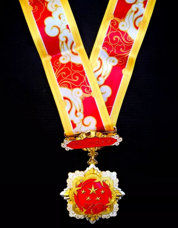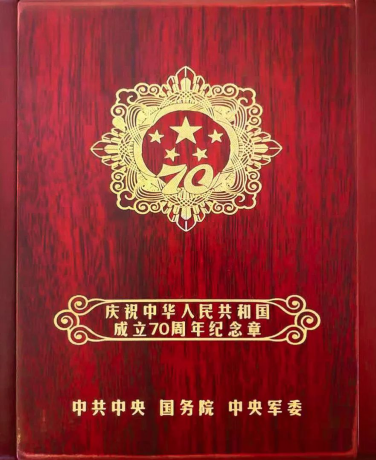 “庆祝中华人民共和国成立70周年”纪念章 颁发“庆祝中华人民共和国成立70周年”纪念章,是新中国成立70周年系列庆?;疃闹匾槌刹糠?,旨在表彰中华人民共和国成立前参加革命工作和健在的老战士老同志、中华人民共和国成立后获得国家级表彰奖励及以上荣誉并健在的人员、中华人民共和国成立后因参战荣立一等功以上奖励并健在的军队人员(含退役军人),以及为中华人民共和国成立作出杰出贡献的国际友人。