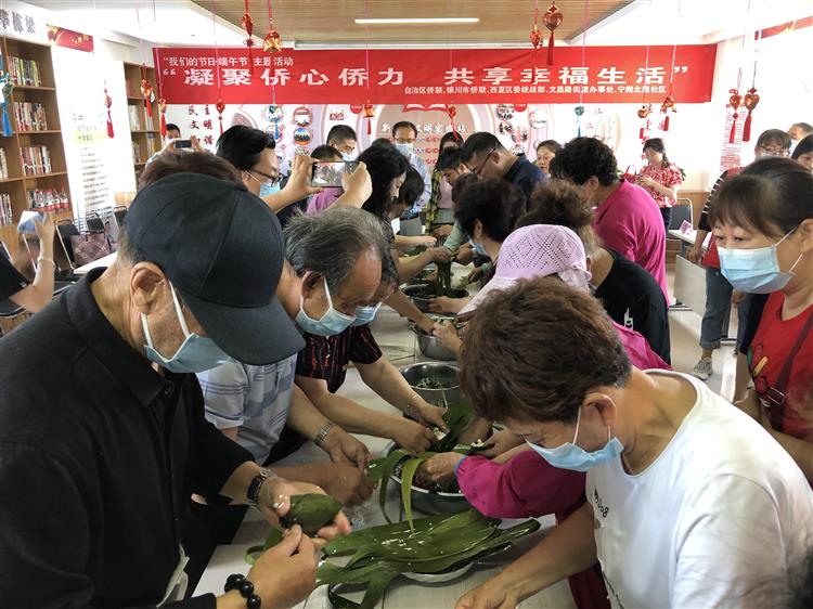6月18日,在中华民族传统节日端午佳节来临之际,宁夏侨联联合银川市侨联、西夏区委统战部、西夏区文昌路街道办事处在西夏区宁朔北路社区“侨胞之家”共同举办了“凝聚侨心侨力 共享幸福生活”端午节主题系列活动?;疃荚?/span>传承中华文化、弘扬爱国情怀、密切与侨胞的情感交流、充分营造爱侨护侨氛围。来自社区的归侨侨眷、党员群众、社区志愿者共计60余人参加了包粽子比赛、中华传统文化知识问答、侨法侨规宣传等活动。