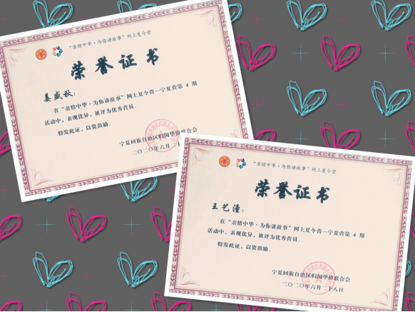 .jpg) “亲情中华”网上夏令营宁夏营开营以来,得到了海外侨团和海外中文学校的热烈响应,广大海外华裔青少年踊跃参与,形成了上下联动、内外互动、集结主动、家长感动、孩子激动的景象。6月29日,第5期夏令营将正式开营,迎接更多的海外华裔青少年朋友参营活动,开启新一期的快乐学习之旅。 | | 上一条:迎端午 叙侨情 暖侨心——宁夏侨联开展端午节主题活动 下一条:塞上江南 神奇宁夏 “亲情中华·为你讲故事”网上夏令营—宁夏营第4期作品展 |