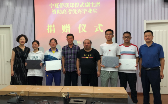 “祝贺你们!希望你们在今后的学习生活中要自信努力,奋发向上,成为国家栋梁之才。”8月10日,宁夏自治区政协常委、宁夏侨联兼职副主席、香港荣通贸易公司总经理郑俊武先生为宁夏银川一中的4名2020年高考优秀毕业生分别捐赠了价值5000元笔记本电脑,这些学生都是来自南部山区建档立卡户家庭的孩子。受赠学生纷纷表示,要把爱心化作实际行动,到大学后努力学习,将来回报社会,为家乡建设出力。