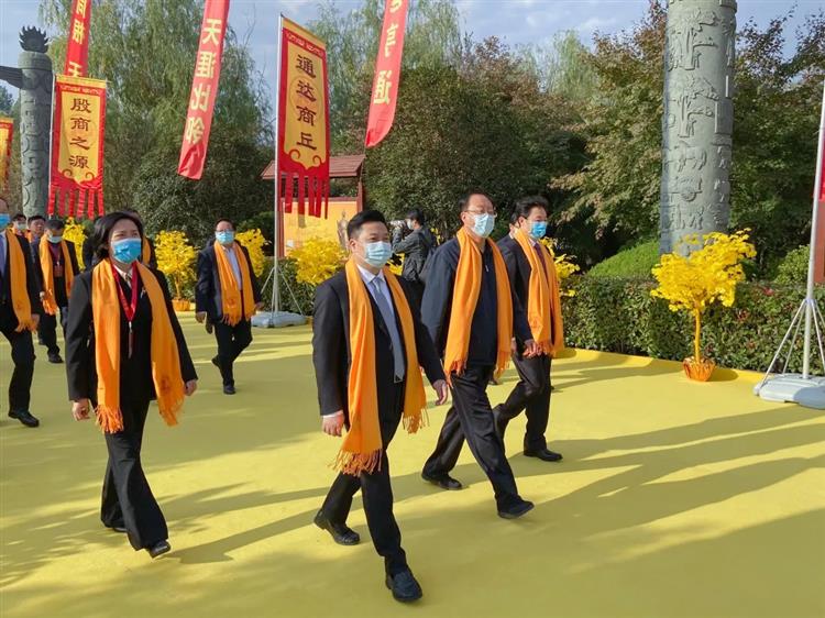 在拜谒仪式上,朱奕龙主席恭读拜谒文:维公元二〇二〇年十月二十五日,岁序庚子,节逢重阳,碧宇澄清,惠风和畅。第八届中国商丘国际华商节代表,聚于河南商丘,以至诚至敬之心、鲜花雅乐之仪,恭祭我华商始祖王亥曰: 天玄地黄,远古洪荒。蒙昧既启,人类曙光。 华夏文明,浩浩荡荡。天命玄鸟,降而生商。 商祖王亥,万古流芳。服牛造车,名列典章。 治理水害,莳谷树桑。首创商业,世代仰望。 诚信为本,仁义昭彰。我祖勋德,恩泽八方。 天下归德,智者无疆。殷商之源,龙脉绵长。 通达商丘,纵横八方。民族复兴,百年梦想。 不忘初心,使命担当。人民领袖,掌舵领航。 众志成城,中国力量。全民抗疫,山河无恙。 红旗漫卷,生命至上。四个意识,信念坚强。 四个自信,引领方向。两个维护,淬火成钢。 依法治国,从严治党。深化改革,扩大开放。 五大理念,施政之纲。公平正义,共建共享。 脱贫攻坚,决胜小康。城乡繁荣,百业兴旺。 中原出彩,气宇轩昂。日月经天,江河奔淌。 商都拜祖,商德传扬。马上就办,实干兴商。 鼓乐齐鸣,百姓殷昌。缅怀商祖,无尚荣光。 同祖同根,同愿同向。心灵家园,魂系神往。 血浓于水,四海共襄。佑我华夏,福祉绵长。 华商汇聚,共铸辉煌。大礼告成,飨此馨香。 朱奕龙主席表示,国际华商节的连续成功举办,提升了商丘市及河南省的影响力,促进了省、市对外开放和经济发展,处处展示着商丘人民开放包容、诚实守信、文明礼仪、热情服务的精神风貌?;探诘木侔旌胙锪酥泄判慊涛幕?、扩大了华商在海内外的影响力,增强了民族凝聚力和华商认同感。