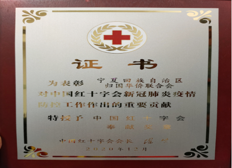 3月18日,自治区红十字会“为新冠肺炎疫情防控工作作出贡献突出捐赠人和志愿者代表颁奖仪式”在银川举行,这是中国红十字总会为弘扬伟大抗疫精神,凝聚更多人道力量为国奉献、为民造??沟娜员碚没疃?,宁夏侨联被授予“中国红十字奉献奖章”,全区共26个单位和个人获此殊荣。