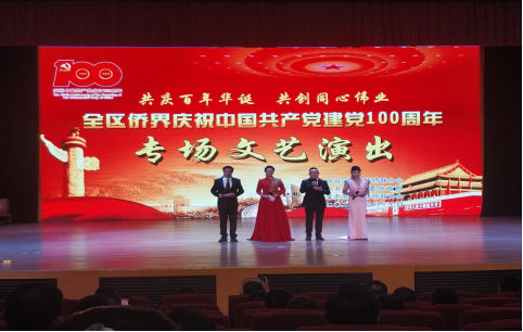 6月17日,由宁夏侨联、中共吴忠市委统战部主办,吴忠市侨联承办的“共庆百年华诞 共创同心伟业”暨全区侨界庆祝中国共产党成立100周年专场文艺演出在吴忠市文化馆举行,全区侨界群众300余人,欢聚一堂,共庆党的百年华诞。宁夏回族自治区党委统战部副部长、自治区政府侨务办公室主任柴建国,宁夏侨联副主席郑大鹏,吴忠市委常委、统战部部长兰德明,自治区党史学习教育第八巡回指导组成员出席活动。 ?