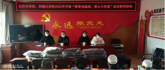 新春将至,岁寒情暖。2022年1月11日上午,吴忠市侨联副主席牛华平、郭谦、利通区侨联主席赵文为、副主席叶丽琼等带领市、区侨联干部一行到吴忠市扁担沟镇五里坡村开展“新春送温暖、爱心大传递”走访慰问活动。在五里坡村委会,详细询问了该村的4户残疾老人、残疾孩子和贫困家庭的生活和身体情况,并送去慰问金2000元,发放御寒棉衣13件。