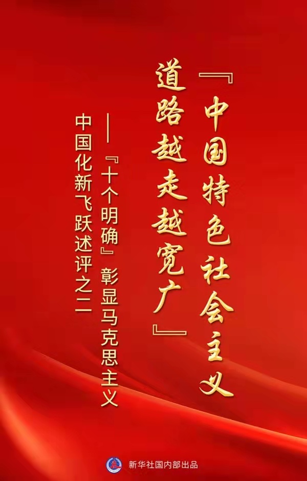 新华社北京2月14日电 思想的光芒,总能穿透历史烟云,点亮未来征途。 “明确坚持和发展中国特色社会主义,总任务是实现社会主义现代化和中华民族伟大复兴,在全面建成小康社会的基础上,分两步走在本世纪中叶建成富强民主文明和谐美丽的社会主义现代化强国,以中国式现代化推进中华民族伟大复兴”。 翻开《中共中央关于党的百年奋斗重大成就和历史经验的决议》,“十个明确”中的这一重要论述,是习近平新时代中国特色社会主义思想核心内涵的重要方面。 积蓄百年伟力,起笔复兴新篇。乘势而上开启全面建设社会主义现代化国家新征程,向着中华民族伟大复兴的光辉彼岸砥砺进发,以习近平同志为核心的党中央带领人民在中国特色社会主义道路上越走越光明、越走越宽广。 彪炳史册的伟大飞跃:“党和国家事业取得历史性成就、发生历史性变革,彰显了中国特色社会主义的强大生机活力” 沐浴着虎年的阳光,开通不久的赣深高铁上,一列列火车飞驰而过。 赣州,深圳。道路的两端意味深长:一端是见证中国共产党带领人民探索革命道路的红色热土,一端是肩负“中国特色社会主义先行示范区”新使命的创新热土。 2021年12月10日,深圳北站工作人员在赣深高铁深圳北站开往南昌西站的首班列车前留影。新华社记者 毛思倩 摄 仿佛一种隐喻,两个具有标志意义的地点,勾勒出一个矢志复兴的民族不懈奋进的历史曲线。 “一百年来,中国共产党团结带领中国人民进行的一切奋斗、一切牺牲、一切创造,归结起来就是一个主题:实现中华民族伟大复兴。”习近平总书记的论述坚定豪迈、发人深省。 党的十八大以来,中国特色社会主义进入新时代。这是我国发展新的历史方位。 新时代坚持和发展什么样的中国特色社会主义、怎样坚持和发展中国特色社会主义? 围绕关系全局的历史性变化,以习近平同志为核心的党中央把握大势、总揽全局,为坚持和发展中国特色社会主义明确清晰的任务书、时间表、路线图: 提出并深刻阐述“中国梦”,强调必须坚定不移坚持和发展中国特色社会主义; 明确坚持和发展中国特色社会主义,总任务是实现社会主义现代化和中华民族伟大复兴; 从全面建成小康社会到基本实现现代化,再到全面建成社会主义现代化强国,明确新时代中国特色社会主义发展的战略安排; “坚持党对一切工作的领导”“坚持以人民为中心”……“十四个坚持”构成新时代坚持和发展中国特色社会主义的基本方略; ………… 在深刻思考和不懈求索中,以习近平同志为主要代表的中国共产党人,从理论和实践结合上作出系统回答。 新矛盾呼唤新变革。以新发展理念为指导,一场关系中国发展全局的深刻变革就此开启—— 2021年12月23日,一列万吨煤炭列车行驶在内蒙古乌兰察布市卓资县境内。新华社发(纪恩泉 摄) “地下煤海”,鄂尔多斯。 走进伊金霍洛旗江苏工业园区的远景现代能源装备产业园,热火朝天的建设景象映入眼帘。 2014年、2019年,习近平总书记两次考察内蒙古;2018年起,全国两会期间,他连续4年来到所在的全国人大内蒙古代表团参加审议,提出要把现代能源经济这篇文章做好,要求探索以生态优先、绿色发展为导向的高质量发展新路子。 鄂尔多斯、包头、乌海……遵循指引,牢记嘱托,推动质量变革、效率变革和动力变革,在重塑中激发源源动力。 这是2021年12月5日清晨在海南洋浦经济开发区拍摄的海南自贸港建设重要的集装箱航运枢纽——洋浦国际集装箱码头(无人机照片)。新华社记者 蒲晓旭 摄 “把握新发展阶段、贯彻新发展理念、构建新发展格局”,习近平总书记审时度势,谋划长远。 黄浦江畔,上海浦东探路社会主义现代化建设引领区; 南海,琼州海峡南岸,海南“启航”中国特色自由贸易港; 雄安新区,承接北京非首都功能和建设同步推进…… 这是2022年1月6日拍摄的河北雄安新区容东片区安置房项目(无人机照片)。新华社记者 骆学峰 摄 放眼神州,长江、黄河两大母亲河发展新战略,南水北调、西气东输、西电东送、青藏铁路四大工程,京津冀、粤港澳、长三角三大新增长极……宏阔格局、万千气象,正是马克思主义中国化新飞跃的时代注脚。 新时代大潮涌起,推动中国特色社会主义迈向新阶段—— 2022年2月3日,游客在中免集团??谌赵鹿愠∶馑暗暄」好馑捌贰P禄缂钦?杨冠宇 摄 经济实力、科技实力、综合国力和人民生活水平跃上新的台阶,稳居世界第二大经济体;全面建成小康社会,历史性地解决绝对贫困问题,向着共同富裕的目标稳步前进…… “我们能够创造出人类历史上前无古人的发展成就,走出了正确道路是根本原因。”习近平总书记深刻指出。 今日之中国,以自信自强的奋斗姿态宣示: “我们坚持和发展中国特色社会主义,推动物质文明、政治文明、精神文明、社会文明、生态文明协调发展,创造了中国式现代化新道路,创造了人类文明新形态。” 深植国情的道路选择:“我们建设的现代化必须是具有中国特色、符合中国实际的” 2022年1月29日,成都城厢站,一声汽笛响起,一列中欧班列驶出站台,开往1万余公里外的德国纽伦堡。 第5万列!新的里程碑。疫情下,中欧班列逆势而上,助力“一带一路”沿线国家共同发展,展现出中国发展的强劲脉动。 所有国家都在时间长河中航行,如何实现国家富强、人民幸福,看的就是