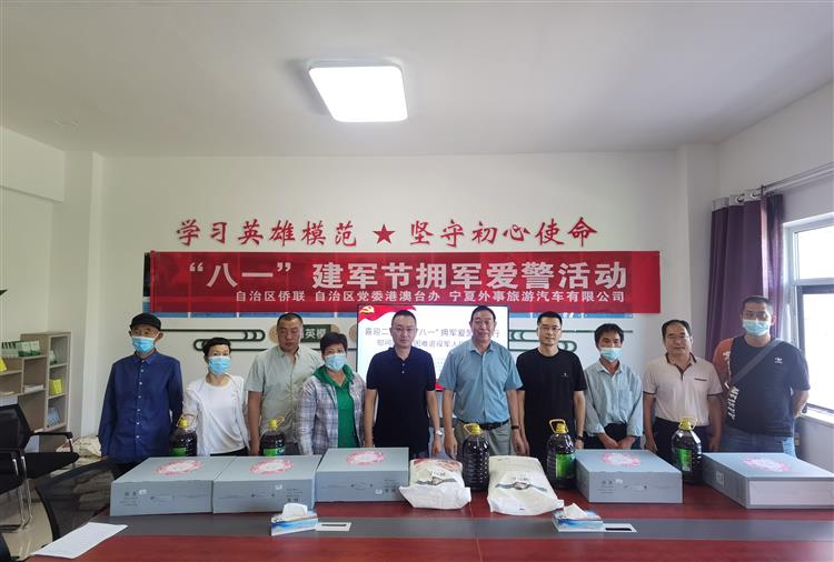为深入贯彻自宁夏第十三次党代会精神,喜迎党的二十大胜利召开,持续营造军民团结共进、共筑强大国防的浓厚社会氛围,7月27日,在第95个建军节到来之际,宁夏侨联联合宁夏党委港澳台办、侨企宁夏外事旅游汽车有限公司,先后赴宁夏银川市西夏区退役军人事务局、银川市金凤区和西夏区交警大队开展“喜迎二十大‘八一’建军节拥军爱警”活动,走访慰问退役军人、公安干警。