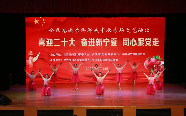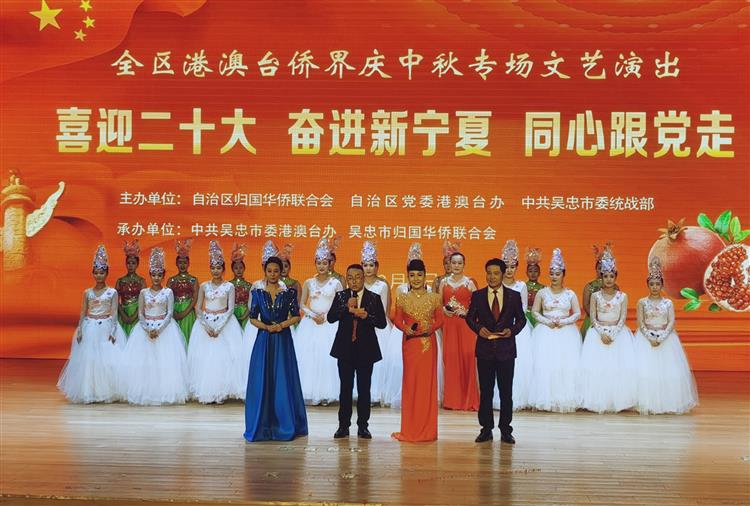 侨心永向党、拳拳赤子心,9月6日下午,由宁夏侨联、宁夏党委港澳台办、吴忠市委统战部共同主办,吴忠市侨联、吴忠市委港澳台办承办的“喜迎二十大·奋进新宁夏·同心跟党走”暨全区港澳台侨界庆中秋专场文艺演出在吴忠市文化馆举行,宁夏港澳台侨界代表、侨界群众,宁夏政府侨办、宁夏侨联、宁夏党委港澳台办等单位的负责同志及干部职工近200人观看了演出。
