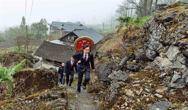 湖北省鹤峰县人民法院积极推行巡回送法进乡村活动,通过现场宣讲、模拟庭审、法律咨询等方式,普及法律知识,化解基层纠纷矛盾,助力乡村振兴。图为法庭工作人员在前往鹤峰县中营镇的路上(2023年2月28日摄)覃涛摄/本刊 习近平法治思想立足中国特色社会主义进入新时代的历史方位,立时代之潮头,发思想之先声,科学回答了新时代我国法治建设向哪里走、走什么路、实现什么目标等根本性问题,在新时代波澜壮阔的治国理政实践中开启了法治中国新篇章,为实现“两个一百年”奋斗目标、实现中华民族伟大复兴的中国梦提供有力法治保障,具有深远的时代价值。 统筹中华民族伟大复兴战略全局和世界百年未有之大变局。习近平法治思想始终蕴含着对“两个大局”的战略思考。党的十八大以来,改革发展稳定任务艰巨繁重,全面对外开放深入推进,人民群众在民主、法治、公平、正义、安全、环境等方面的要求日益增长,全面依法治国在党和国家工作全局中的地位更加突出、作用更加重大。习近平总书记统筹中华民族伟大复兴战略全局和世界百年未有之大变局,统揽伟大斗争、伟大工程、伟大事业、伟大梦想,提出必须坚持把全面依法治国摆在全局性、战略性、基础性、保障性位置。 同时,随着中国与世界关系的变化,习近平总书记还提出必须坚持统筹推进国内法治和涉外法治。他明确指出:“中国走向世界,以负责任大国参与国际事务,必须善于运用法治。”“要加快涉外法治工作战略布局,协调推进国内治理和国际治理,更好维护国家主权、安全、发展利益。” 只有牢牢抓住推动构建人类命运共同体这条主线,不断丰富和完善新时代中国国际法理论体系,以建设性态度积极参与国际规则制定,推动国际法治朝着更加公正合理方向发展,同时进一步提高科学运用国际法维护我国主权、安全、发展利益的能力,才能让我们在激荡的大变局中站稳脚跟。 扎根中国特色社会主义法治实践沃土。习近平法治思想是在推进社会主义法治建设的伟大实践过程中应运而生的,紧扣时代主题,具有强烈问题意识和鲜明问题导向,彰显实践品格和实践伟力。 党的十八大以来,以习近平同志为核心的党中央以前所未有的决心、举措和力度推进全面依法治国,全面系统研究解决全面依法治国重大事项、重大问题,协调推进中国特色社会主义法治体系和社会主义法治国家建设。从依法治国到全面依法治国,从建设中国特色社会主义法律体系到建设中国特色社会主义法治体系,从“有法可依、有法必依、执法必严、违法必究”到“科学立法、严格执法、公正司法、全民守法”,从建设法治中国到统筹国内法治和涉外法治,我们解决了法治领域许多长期想解决而没有解决的难题,办成了许多过去想办而没有办成的大事,社会主义法治国家建设取得历史性成就、发生历史性变革。 把握法治对国家治理体系和治理能力的重要依托作用。习近平总书记明确全面推进依法治国总目标是建设中国特色社会主义法治体系、建设社会主义法治国家,深刻阐明“法治是国家治理体系和治理能力的重要依托”。 全面依法治国是国家治理的一场深刻革命,是实现国家治理体系和治理能力现代化的必然要求。只有全面依法治国,才能有效推进多层次多领域依法治理,提升社会治理法治化水平,保障国家治理体系的系统性、规范性、协调性、稳定性,最大限度凝聚社会共识;才能发挥制度优势,使党和国家各项事业、各项工作都在法治框架内有序运行,推动中国特色社会主义制度更加成熟更加定型,提升国家治理体系和治理能力;才能更好把社会主义法治优势转化为国家治理效能,依法应对重大挑战、抵御重大风险、克服重大阻力、解决重大矛盾,助力“中国之治”。 习近平法治思想深刻阐明了法治在推进国家治理体系和治理能力现代化中的重要作用,为我们在法治轨道上推进国家治理体系和治理能力现代化、不断谱写“中国之治”新篇章提供了行动指南。 全面推进依法治国这件大事能不能办好,最关键的是方向是不是正确、政治保证是不是坚强有力。习近平总书记指出:“法治领域改革政治性、政策性强,必须把握原则、坚守底线”。 习近平法治思想具有鲜明政治性,揭示出法治的内在政理,指引我们善于从政治的高度认识和处理法治问题,从政治上看问题、把方向,不断增强在法治领域的政治判断力、政治领悟力、政治执行力。 强调党对全面依法治国的领导,突出政治导向。习近平总书记指出:“党的领导是中国特色社会主义法治之魂,是我们的法治同西方资本主义国家的法治最大的区别。” 党的领导和依法治国是高度统一的。党提出依法治国基本方略,带领人民在实践中推进依法治国,依法治国伟大实践充分体现了党和人民意志;同时,党自身必须依法办事,在宪法法律范围内活动,必须推进党的领导制度化、法治化,这既是加强党的领导的应有之义,也是法治建设的重要任务。 只有在党的领导下依法治国、厉行法治,人民当家作主才能充分实现,国家和社会生活法治化才能有序推进。把党的领导贯彻到依法治国全过程和各方面,是我国社会主义法治建设的一条基本经验。 厘清法治和政治的关系,体现政治底色。习近平法治思想明确党和法的关系是政治和法治关系的集中反映。一方面,政治决定法