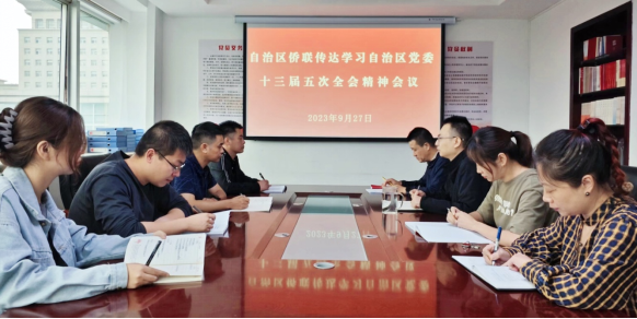 9月27日上午,自治区侨联召开机关全体党员干部职工会议,传达学习自治区党委十三届五次全会精神?;嵋檠傲俗灾吻澄榧橇貉运吃谌嵘系慕不熬?、《中国共产党宁夏回族自治区第十三届委员会第五次全体会议公报》、《关于深入学习贯彻习近平总书记重要讲话精神、全面推进新征程生态文明建设、加快建设美丽宁夏的意见》,对“1+4”系列文件作了介绍说明,并围绕抓好全会精神贯彻落实提出具体要求。