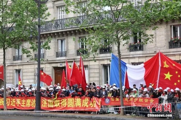 当地时间5月5日,中国国家主席习近平抵达巴黎,开始对法国进行国事访问。在巴黎街头,华人华侨和中国留学生高举“中法友谊万岁!”、“祝习近平主席访问法国取得圆满成功!”等红色横幅,挥舞中法两国国旗,热烈欢迎习近平主席到访。中新社记者 盛佳鹏 摄 “当天,在法华侨华人和中国留学生在道路两旁挥舞两国国旗,敲锣打鼓,舞龙舞狮,热烈欢迎习近平主席,祝福两国友谊万岁。”欧洲华语广播电台台长邵爱伦表示,此访期间,中方宣布中国将对法国等12国公民短期来华的免签政策延长至2025年年底,并支持增开上海至马赛直飞航线,相信此举会推动更多法国民众赴华观光旅游,亲身感受和体验中国的风土人情与发展变化。欧洲湖北商会会长林鹏在法国生活了20多年,见证了两国民众在舞蹈、音乐等艺术方面的交流。“每年我们都会举办武术节、服装秀和春晚,让当地民众近距离感受多姿多彩的中华文化。今年是两国建交60周年,我期待在华侨华人的积极参与下,能够涌现更多的文化交流活动,进一步增进友谊。”“中国和塞尔维亚是‘铁杆朋友’,合作为两国带来互利共赢。”塞尔维亚华人商业联合会会长郭晓表示,在塞尔维亚,泽蒙-博尔察大桥、匈塞铁路、E763高速公路等合作成果便利了当地民众生活,塞尔维亚也成为中国外贸企业进入欧洲市场的重要渠道。“塞尔维亚是我的第二故乡,希望未来能够通过电商平台等渠道,将更多的塞尔维亚产品带到中国,也希望越来越多的中国游客到塞尔维亚旅游,亲自感受和了解这个美丽的国家”。