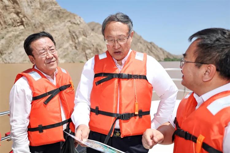 7月2日,李邑飞在黄河黑山峡河段,察看水情和水利枢纽工程规划情况。