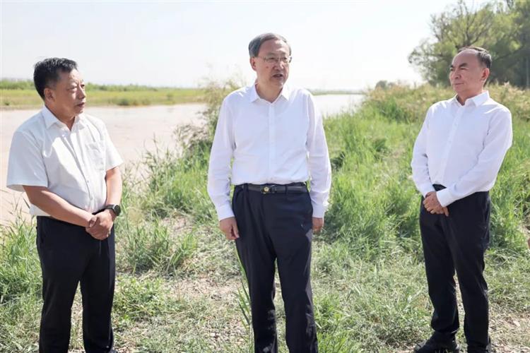 7月2日至3日,自治区党委书记李邑飞深入中卫市、吴忠市、银川市,沿黄河而下实地察看,专题调研黄河流域生态?;ず透咧柿糠⒄瓜刃星ㄉ柰平榭觯康饕钊胙肮岢瓜敖缴拿魉枷牒妥苁榧强疾炷闹匾不熬?,以总书记深厚大江大河情怀为鞭策,统筹推进高质量发展和高水平?;?,找准牵一发而动全身的主要矛盾和关键问题,精准发力、精耕细作,动员各方力量?;せ坪幽盖缀樱蛴蚝没坪?ldquo;几字弯”宁夏攻坚战,推进先行区建设取得新突破、再上新台阶。  7月3日,李邑飞在清水河入黄口,调研入黄水质监测及综合防治工作。