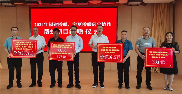 8月12日至15日,福建省侨联党组成员、副主席、秘书长刘思一,福建省侨联兼职副主席、厦门市侨联党组书记、主席陈俊泳与省侨商联合会、厦门市侨联、福州市长乐区侨联、泉州市石狮市侨联、泉州市石狮市湖滨街道侨联及部分侨商代表等一行13人来宁开展帮扶和考察交流活动。自治区党委统战部、自治区侨联、自治区政府驻福建办事处相关负责同志参加。 吴忠市盐池县“闽宁协作”帮扶捐赠仪式