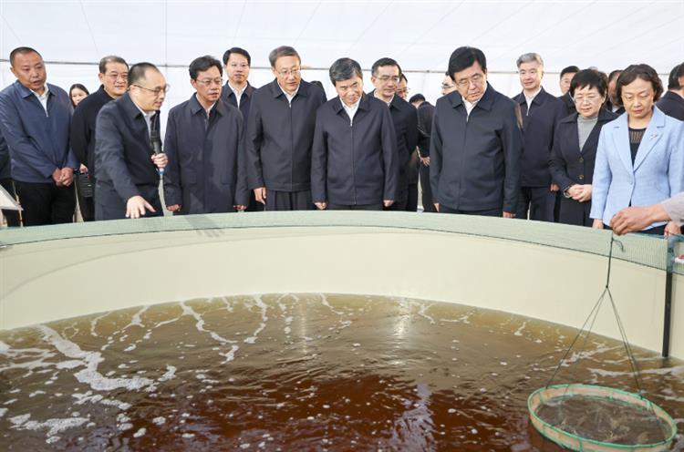 福建省党政代表团在贺兰蓝湾生态农业公司“海鱼陆养”项目,考察水产健康养殖情况。