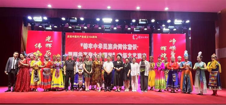 情景剧《夕阳无限好》、配乐诗朗诵《石榴籽?中华情》、快板《八五普法》、舞蹈《永恒的赞歌》等节目接续呈现,以多元艺术语言,诉说建党104年来的奋斗史诗与团结伟力。压轴民族服饰展《我爱家乡我爱家》,以绚丽服饰诠释民族文化魅力,为演出画上圆满句点。整台演出形式多元、内容厚重,尽显统战人士与祖国同呼吸、共命运的深情,以及热爱家乡、助推文化交流的风貌,获现场观众热烈掌声与喝彩。  精彩的文艺演出为侨界人士、党外知识分子、新的社会阶层人士搭建起才艺展示与交流互动平台,演出不仅是一场视听盛宴,更是一次深刻的红色教育,为现场观众打造了一场沉浸式红色文化体验,丰富了群众业余文化生活,激发了群众的爱国热情,用实际行动向党的生日献礼。 |