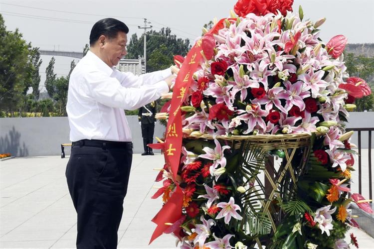 2017年6月21日,习近平总书记来到兴县,参观晋绥边区革命纪念馆,向革命烈士敬献花篮。新华社记者 李学仁 摄