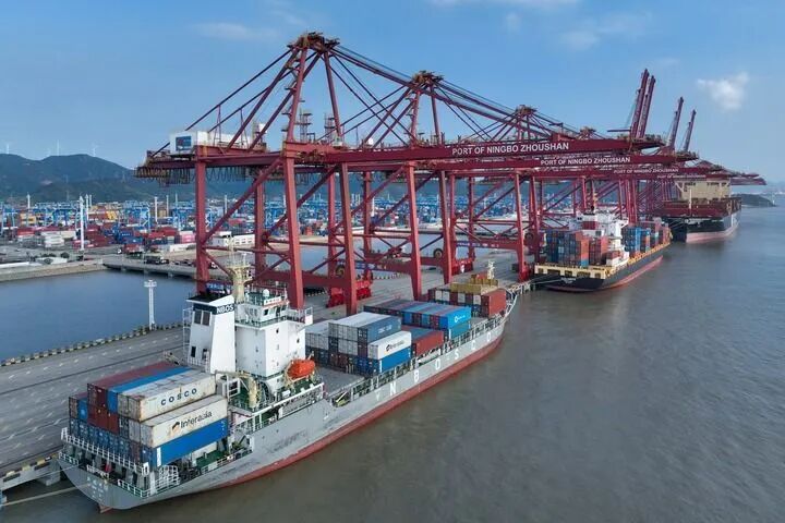 历史总是在接续奋斗中书写新篇。 即将收官的“十四五”,新时代中国在风起潮涌中驶过壮丽的又一程—— 完整准确全面贯彻新发展理念,加快构建新发展格局,全面推动高质量发展,我国经济社会发展取得新的开创性进展、突破性变革、历史性成就。 科学理论的磅礴之力,深刻塑造着一个大国的发展轨迹,指引通往强国建设、民族复兴伟业的伟大征途。 思想之光照亮奋进之路。以习近平同志为核心的党中央带领亿万人民不惧风雨、破浪前行,以无比的勇毅攻坚克难,以坚定的信心开创未来,在理论创新和实践创新相互激荡、彼此辉映的进程中推动中国不断迈向发展新境界。 (一) 东海之滨,宁波舟山港,岸线上靠满万吨巨轮,桥吊装卸不停。截至9月11日,港口今年集装箱吞吐量突破3000万标准箱,较去年提前23天,再次刷新历史纪录。 借由海铁联运、江海联运,这个全球年货物吞吐量16连冠的超级大港,已将港口腹地拓展至长江上游,助力畅通长江黄金水道、西部陆海新通道、中欧班列和21世纪海上丝绸之路,在横跨东中西、衔接海陆空的开放型经济走廊上成为重要枢纽。