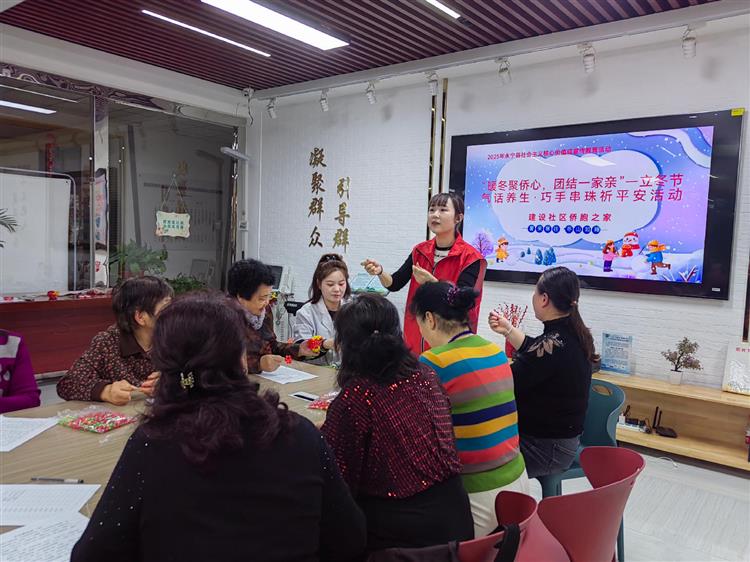 为凝聚侨心侨力、促进各族群众交往交融,近日,银川市永宁县建设社区“侨胞之家”举办“暖冬聚侨心 团结一家亲”立冬节气主题活动,30余名归侨侨眷及各族群众欢聚一堂,在节气韵味与邻里温情中共度美好时光。 节气话传统,文脉润侨心。社区工作人员通过图文并茂的PPT,深入浅出地讲解了立冬的由来、传统习俗,还分享了陆游“次第梅花报平安”等经典诗词,让大家在感知时节韵律的同时,深刻领略二十四节气的古老智慧。熟悉的文化记忆勾起归侨侨眷对故乡的思念与共鸣,进一步筑牢了文化认同与民族自豪感。